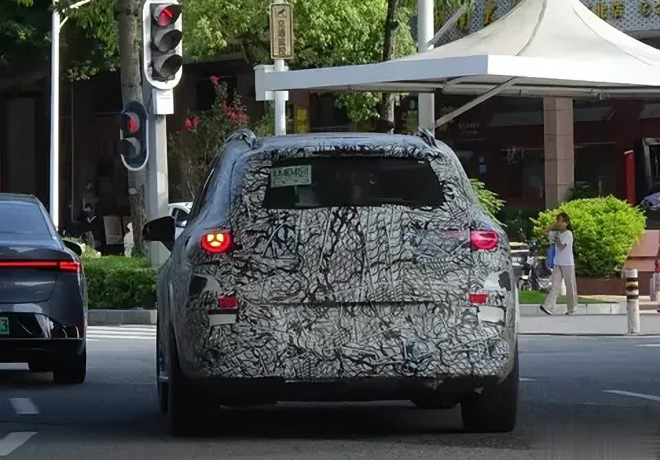 从曝光的照片看,新车虽贴有伪装拉花,但整体轮廓已清晰可见。最明显的变化是车身加长,尤其是B柱到C柱之间更显修长,车窗线条更直,D柱也更垂直,告别了海外版溜背的圆润造型,看起来更稳重、大气。前脸预计延续海外版设计,大灯更大,搭配“三叉戟”灯组和可点亮的点阵格栅,科技感十足。
